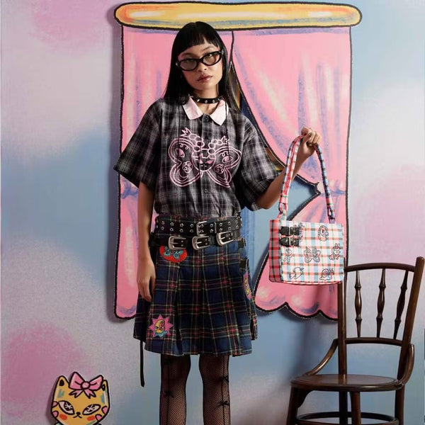 Material: Japanese Cotton Plaid with embroidery patches details.
