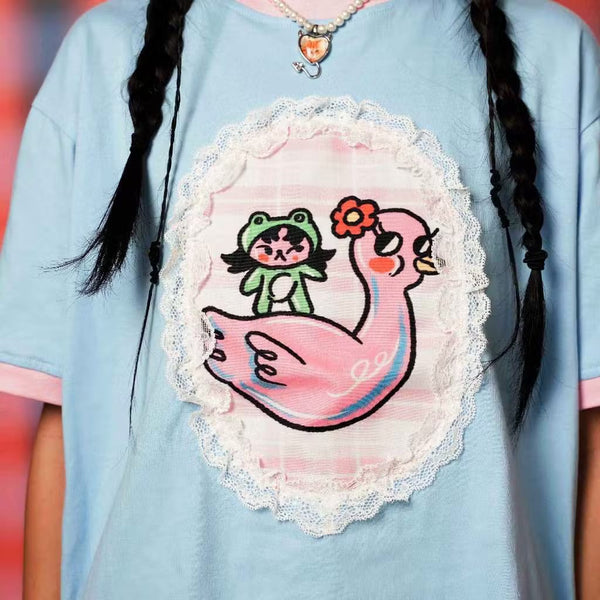 A cute Illustrated Goose Tshirt with sweet lace details.